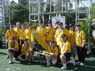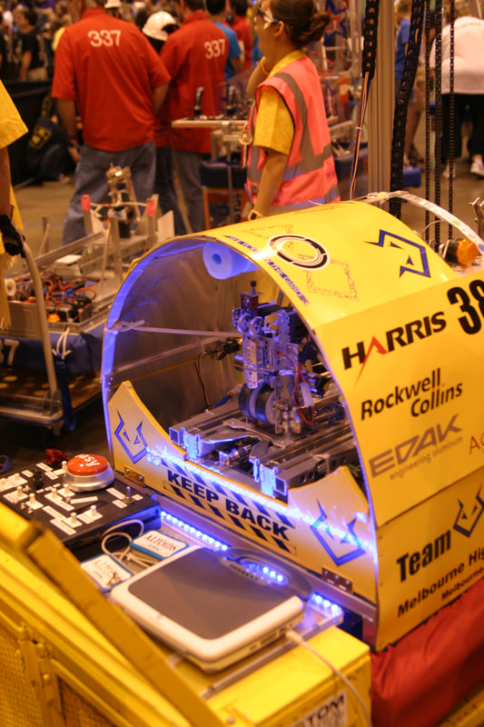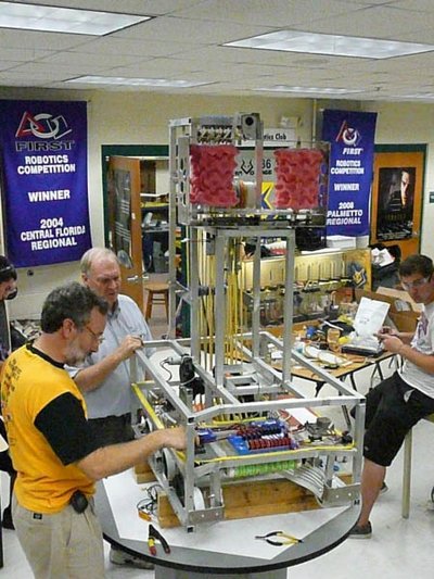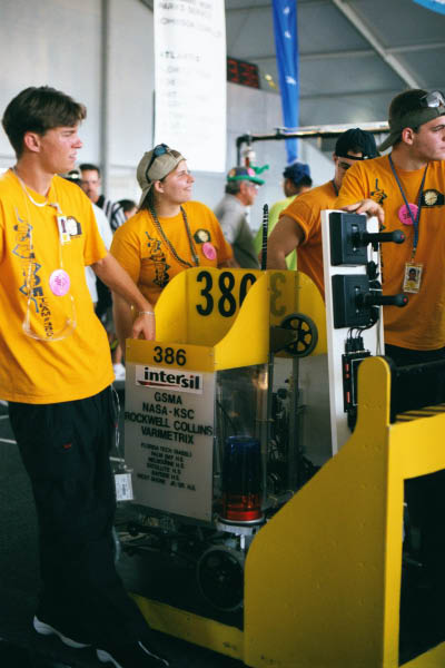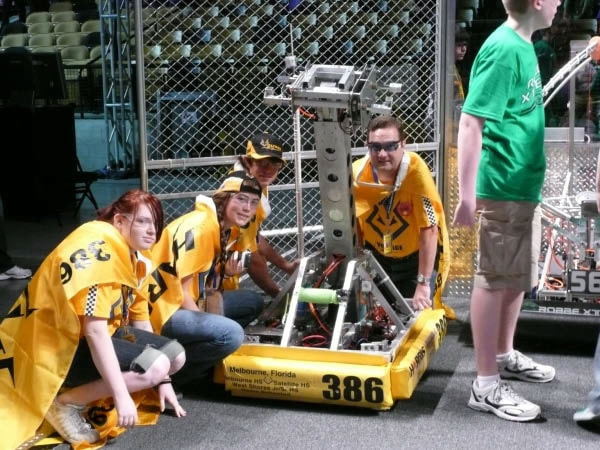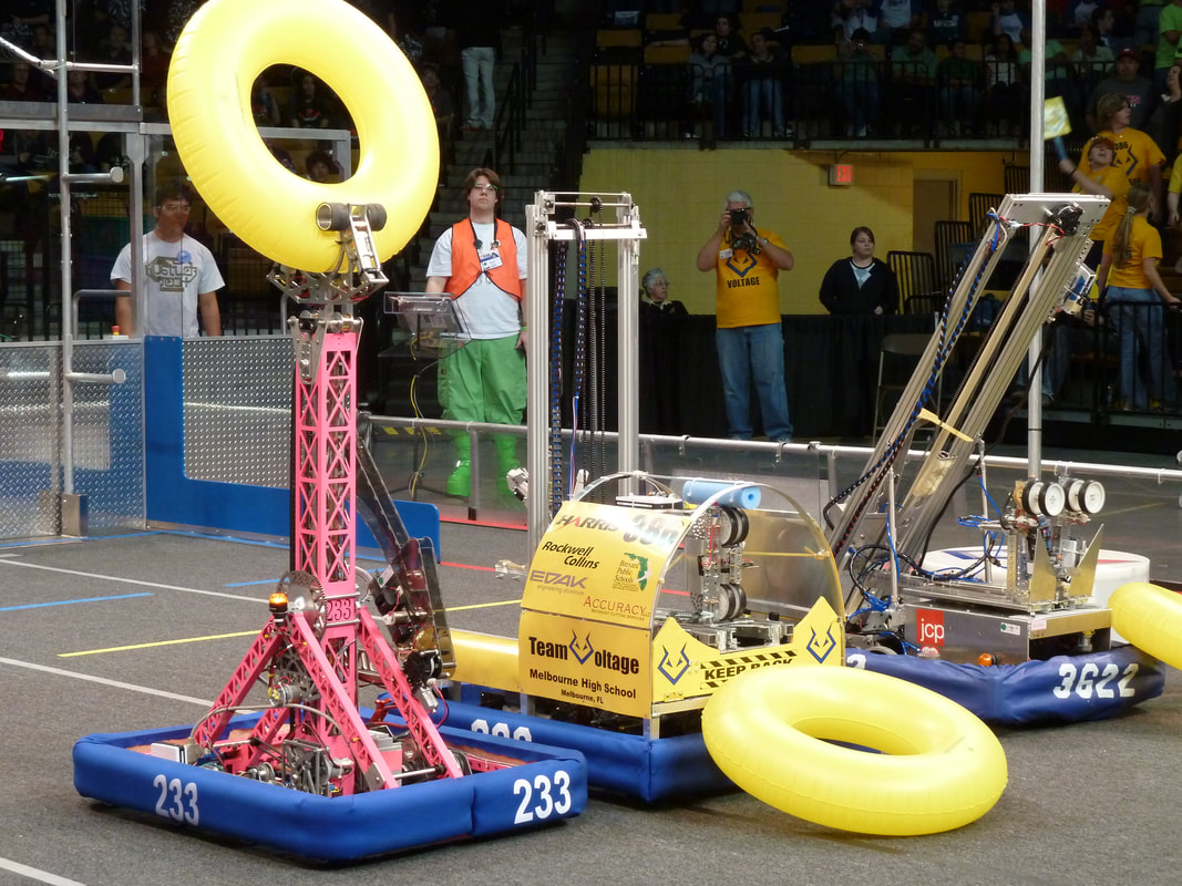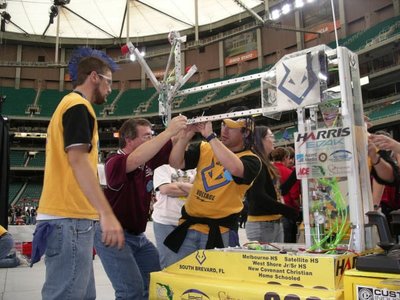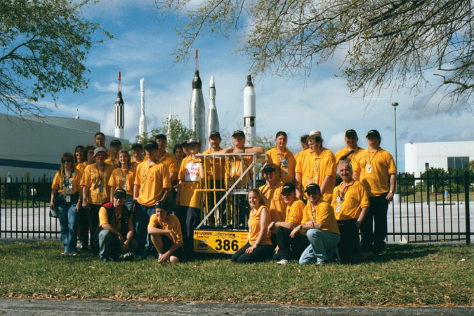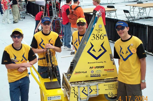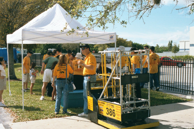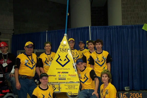 Back in 1999, Melbourne High School faced a unique challenge in South Brevard County. Local corporate sponsors were hesitant to support a single school robotics team, citing concerns that it wouldn't adequately benefit the community. To address this, students from various schools across Brevard County, including Melbourne HS, Palm Bay HS, Satellite HS, Eau Gallie HS, and Melbourne Central Catholic HS, banded together to form Team Voltage. Despite the initial hurdles, the team managed to establish itself in time for the 2000 Season and has been actively participating in FIRST ever since.