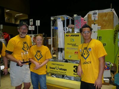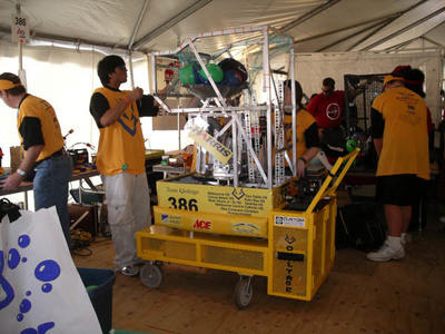 2007 was a great year for Team Voltage. In addition to an innovative design for the Robot, we were also selected to participate in the FIRST Fuel Cell "Green Machine" challenge . Highlights of the game included Research & Development, Building & Testing a Fuel Cell/System, Game Design and Hydrogen Safe Game Floor, and the Insertion of a Fuel Cell System in a Competition Robot.
