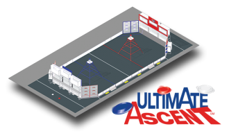 ULTIMATE ASCENT is played by two competing alliances on a flat, 27 x 54 foot field. Each Alliance consists of three robots, and they compete to score as many discs into their goals as they can during a two (2)-minute and fifteen (15)-second match. The higher the goal in which the disc is scored, the more points the Alliance receives. The match begins with a fifteen (15)-second Autonomous Period in which robots operate independently of driver inputs. Discs scored during this period are worth additional points. For the remainder of the match, drivers control robots and try to maximize their alliance score by scoring as many goals as possible. The match ends with robots attempting to climb up pyramids located near the middle of the field. Each robot earns points based on how high it climbs.